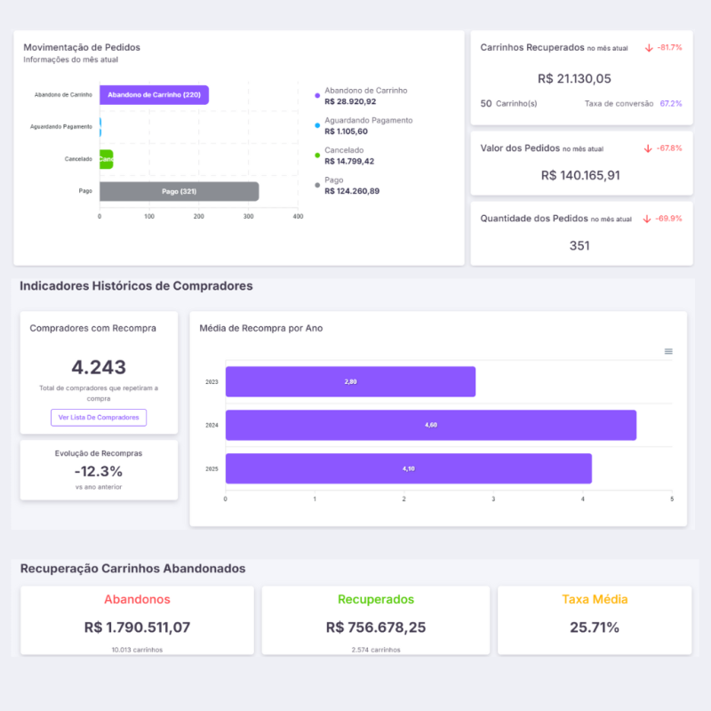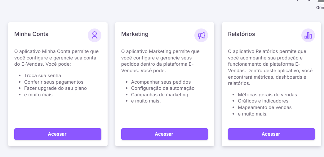 Esse módulo é muito mais completo com diversas métricas e indicadores de desempenho do seu negócio, assim você pode ter mais informações sobre como o E-Vendas ajuda e melhora o faturamento do seu negócio.